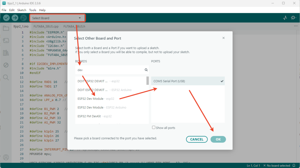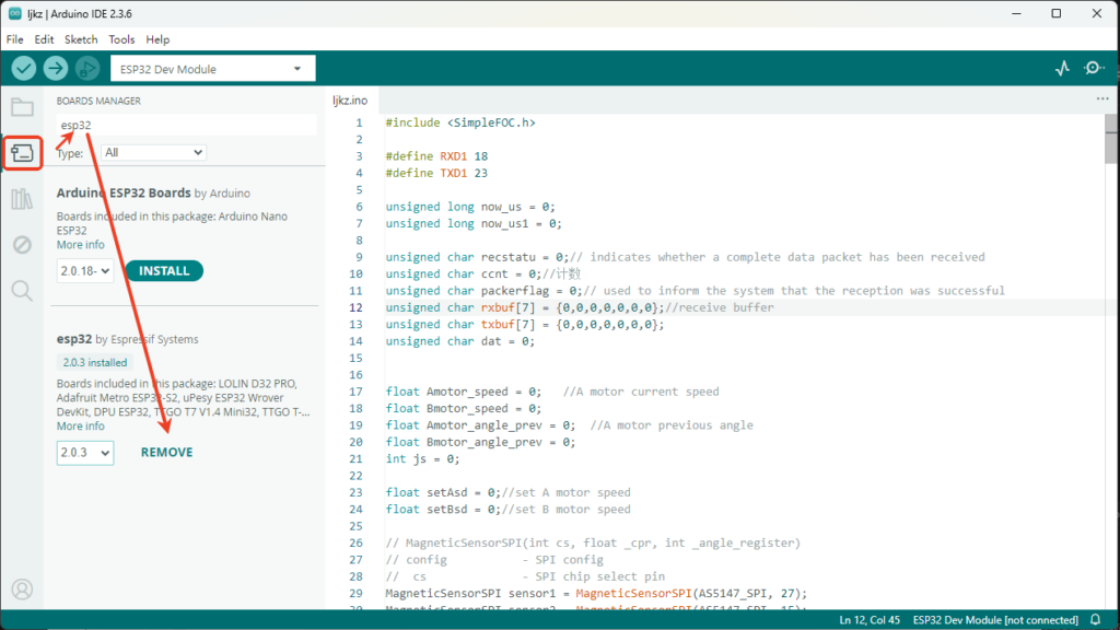 Then go to Tools > Board > Board Manager, search for “ESP32,” and install the board support package.