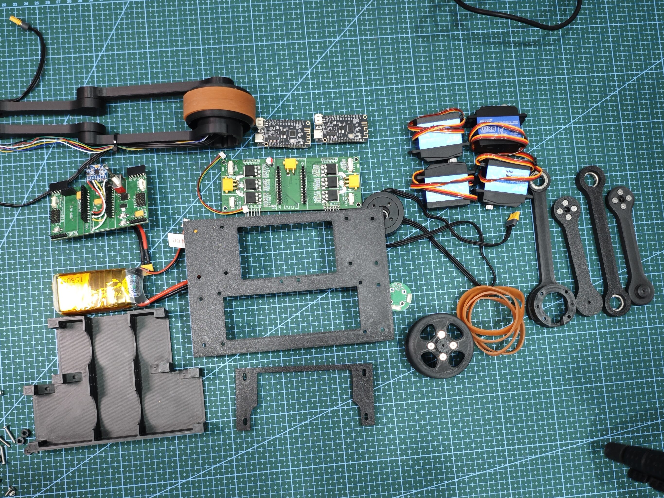- 3D-printed structural components (STL files available in the GitHub repo)