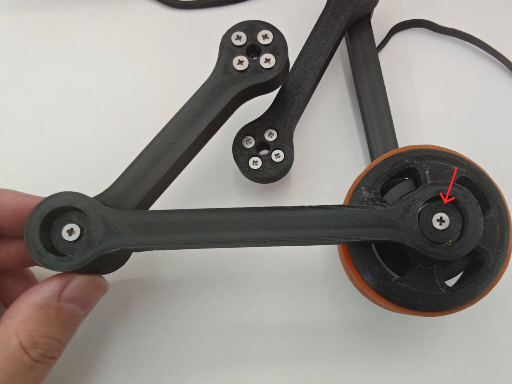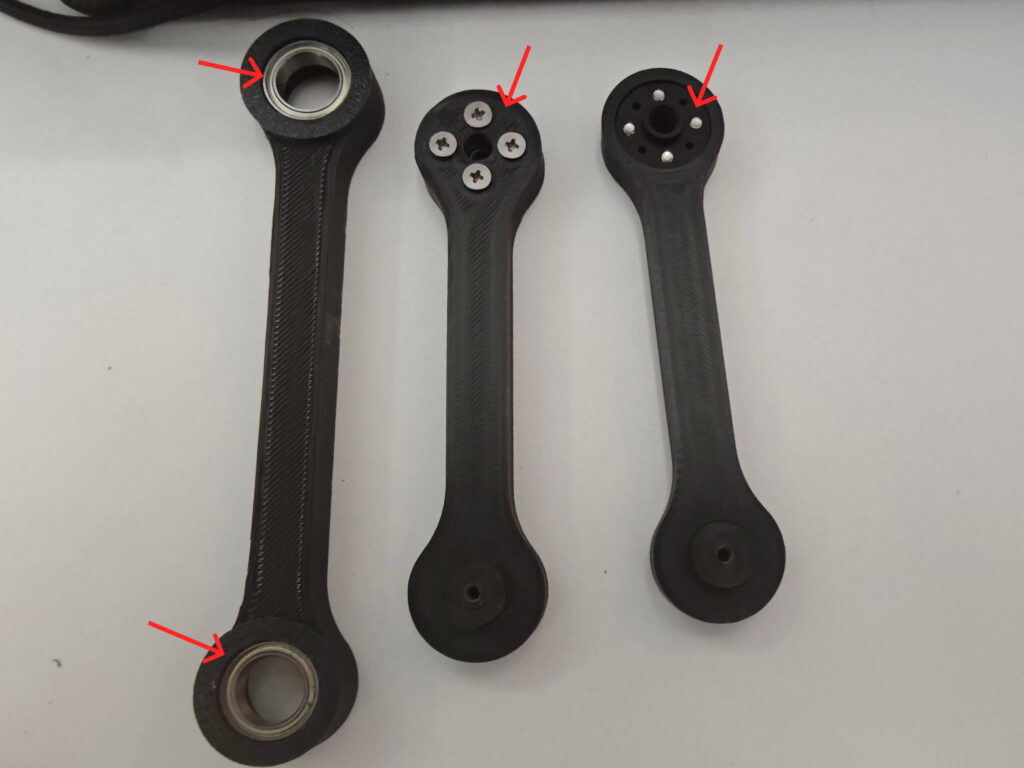 - Use glue to secure the bearings into the joint parts, then fasten the servo horn with screws.