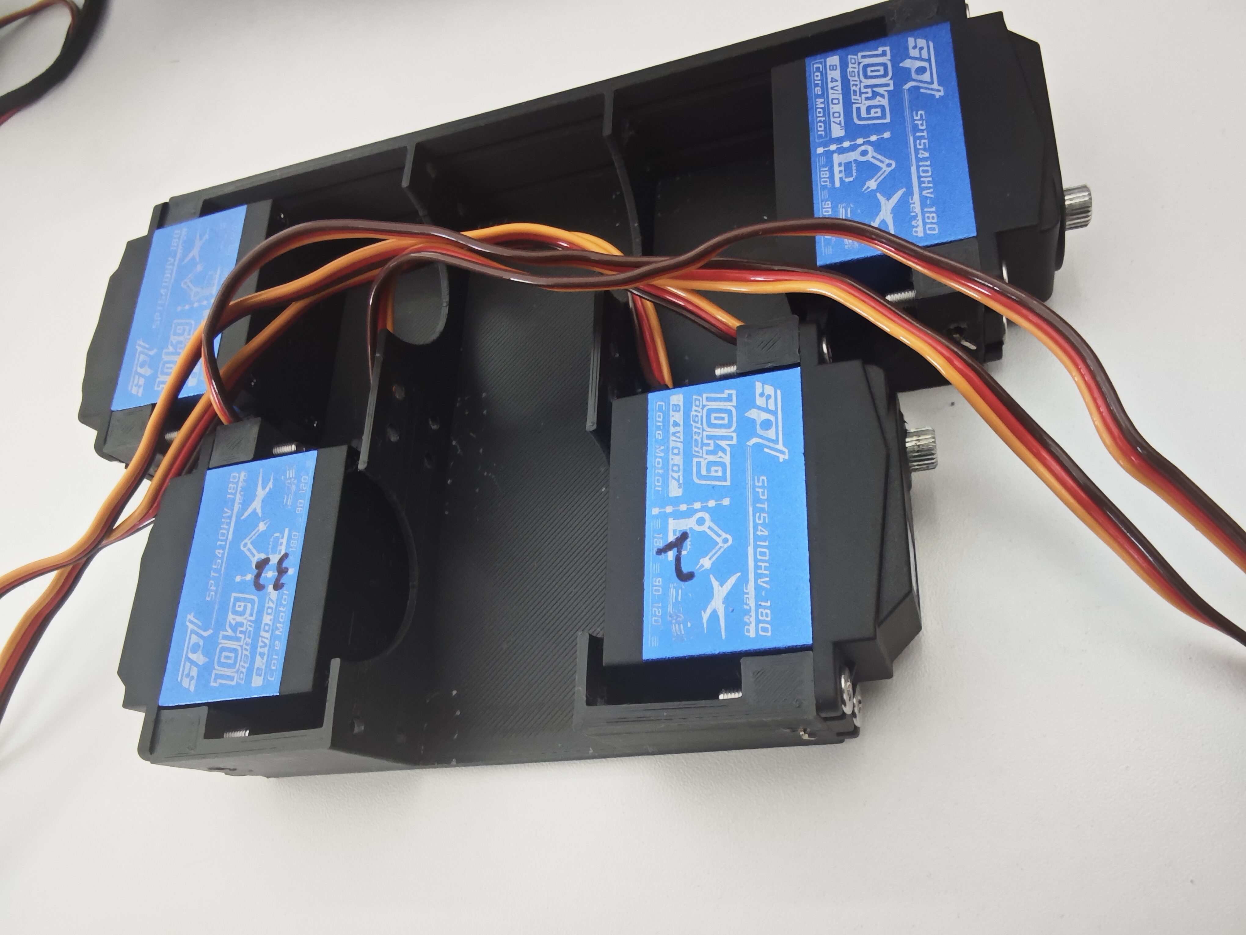 - Connect and fasten the mainboard support and servo bracket together. Manage the cables.