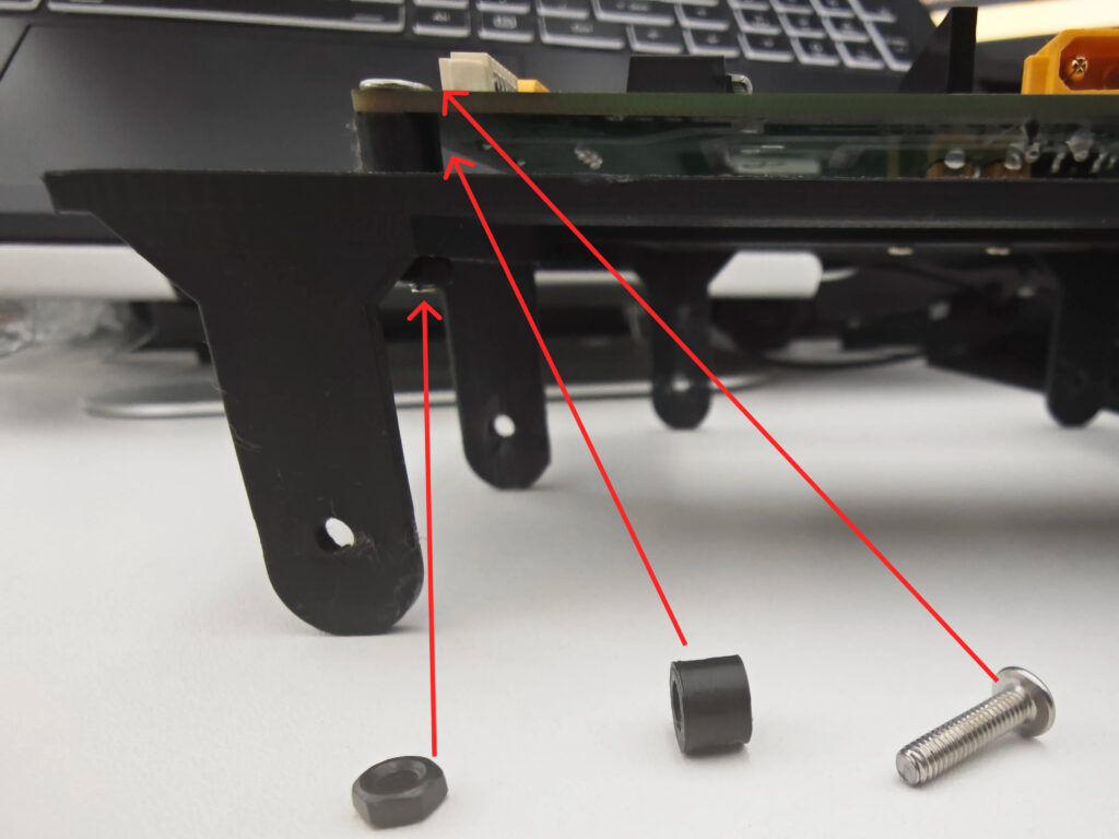 - Install the brass standoffs for securing the gyroscope onto the mainboard support frame.