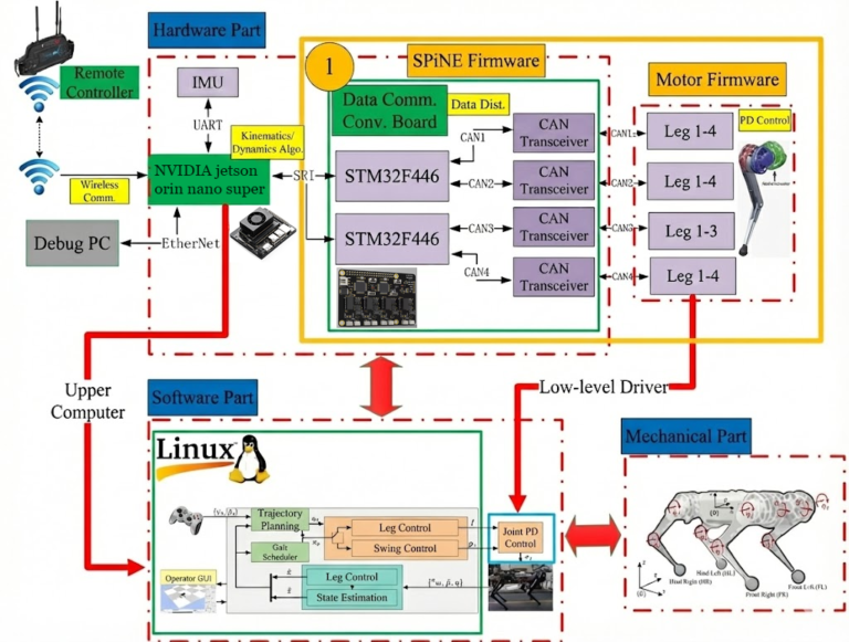 This article systematically introduces the technical architecture and implementation details of the MIT Cheetah robot, covering the complete process from system architecture, simulation environment configuration, hardware platform selection to software environment setup. It focuses on analyzing the working principles and code implementation of the SPIne data communication conversion board, including SPI communication, CAN bus communication, and related data encapsulation and parsing mechanisms.